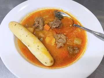 Hearty tomato-based soup with beef, cabbage and vegetables. (Already Gluten Free)